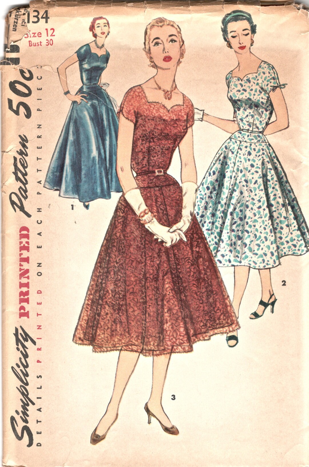 Simplicity 1134 1950s Misses Cocktail Dress Gown Pattern Etsy Uk